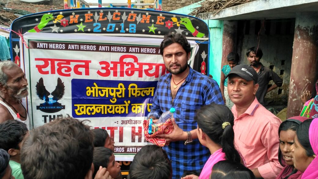 सद्कर्मो में हमेशा अग्रसर रहने वाले भोजपुरिया खलनायको के ग्रुप एन्टी हीरोज ने बाढ़ पीडितो की सहायता के लिए बिहार में राहत शिविर लगाया है । उस शिविर में राहत सामाग्री वितरण का जिम्मा ग्रुप के सदस्य सोनू पांडे के कंधों पर है । ग्रुप के सदस्य आपस मे चंदा इकट्ठा कर इस शिविर का संचालन कर रहे हैं ।