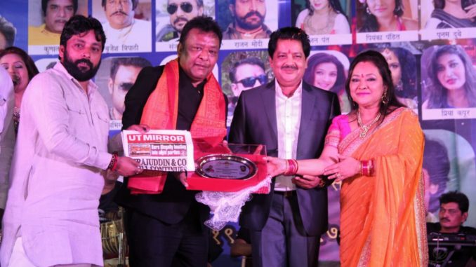 मुम्बई के साकीनाका में श्री साईं श्रद्धा प्रतिष्ठान द्वारा आयोजित उत्तर भारतीय सम्मेलन में भोजपुरी फ़िल्म जगत के कई दिग्गजो ने अपनी मौजूदगी दर्ज कराई । इस मौके पर भारतीय जनता युवा मोर्चा की अध्यक्षा सांसद पूनम महाजन के हाथों कलाकारों और फ़िल्म जगत से जुड़े लोगों को सम्मानित भी किया गया । श्री साईं श्रद्धा प्रतिष्ठान के अध्यक्ष शुभ्रांषु दीक्षित व राष्ट्रीय पुरस्कार विजेता निर्देशक आंनद गहतराज द्वारा आयोजित इस समारोह में पद्मभूषण उदित नारायण , सुपर स्टार पवन सिंह , हास्य कलाकार सुनील पाल, अभिनेत्री प्रियंका पंडित , प्रिया कपूर , अभिनेता रवि शेखर सिन्हा , सतेंद्र सिंह , राजन मोदी , निर्माता विवेक रस्तोगी , संगीतकार एस कुमार , भोजपुरी पंचायत के कुलदीप श्रीवास्तव और प्रचारक उदय भगत का सम्मान किया गया ।