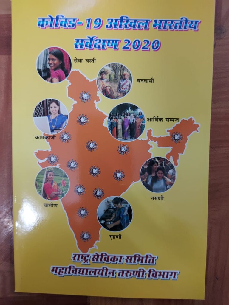 ये कुछ झलकियां हैं उस सर्वे की जो कोविड लॉक डॉऊन के दौरान राष्ट्र सेविका समिति के तरूणी विभाग ने भारत की चारों दिशाओं में और समाज के हर वर्ग में किया। 28 प्रांतों के, 567 जिलों में, 1200 टीनएजर्स लड़कियों ने लगभग 17000 हज़ार महिलाओं, युवतियों और किशोरियों से मुलाकात की। सर्वे की प्रशनावली के अनुसार सवाल पूछे। अखिल भारतीय तरुणी प्रमुख भाग्यश्री साठे ने बताया कि 25 जून से 4 जुलाई तक देश भर में व्यापक सर्वेक्षण किया गया और इस सर्वेक्षण के माध्यम से जो विश्लेषण तैयार हुआ है वह पुस्तक के रूप में संकलित किया गया। मंगलवार को सर्वेक्षण पुस्तक का वर्चुअल विमोचन किया गया। इस अवसर पर राष्ट्र सेविका समिति की अखिल भारतीय सह कार्यवाहिका सुश्री सीता गायत्री अन्नदानम ने कहा इस सर्वे ने देश के युवा वर्ग में समाज के लिए कुछ करने का भाव जाग्रत किया। उन्हें समाज के दुख दर्द को अनुभव करने का अवसर मिला। महिलाओं की शक्ति पहचानने का अवसर मिला।