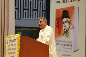 राष्ट्रीय स्वयंसेवक संघ के माननीय सरकार्यवाह श्री दत्तात्रेय होसबाले जी ने कहा कि संघ की आधारशिला रखने वाले डॉक्टर केशव बलिराम हेडगेवार जी एक समग्र राष्ट्रीय सोच वाले व्यक्ति थे। राष्ट्रभक्ति की भावना उनके अंदर जन्मजात थी। राष्ट्र के लिए उन्होंने अपना संपूर्ण जीवन समर्पित कर दिया। आज की पीढ़ी उनकी देशभक्ति और राष्ट्रीय विचारों से प्रेरणा लेती है। सरकार्यवाह दत्तात्रेय होसबाले जी संघ संस्थापक प्रथम सरसंघचालक डॉक्टर हेडगेवार जी की जीवनी ‘Man of the Millennia: Dr Hedgewar’ के विमोचन के अवसर पर बोल रहे थे। इस कार्यक्रम में आंध्र प्रदेश के माननीय राज्यपाल न्यायमूर्ति (सेवानिवृत) एस अब्दुल नजीर मुख्य अतिथि थे। सुरुचि प्रकाशन द्वारा प्रकाशित इस पुस्तक के मूल मराठी लेखक नाना पालकर थे जिसका अंग्रेजी में अनुवाद स्वर्गीय डॉक्टर अनिल नैने ने किया है।