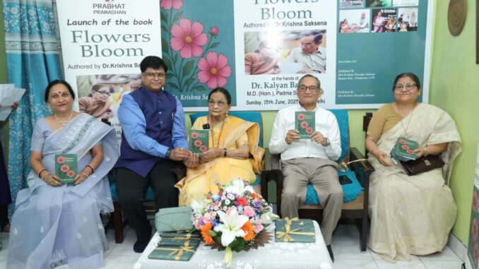 नई दिल्ली, 15 जून, 2025: वरिष्ठ लेखिका डॉ. कृष्णा सक्सेना की नई पुस्तक ‘फ्लावर्स ब्लूम’ का विमोचन, पद्मश्री डॉ. कल्याण बनर्जी के हाथों हुआ। ‘फ्लावर्स ब्लूम’ कई सरल और मार्मिक लघु कहानियों का संग्रह है, जो मानवीय मूल्यों को सामने लाती हैं। पुस्तक की लेखन शैली सरल है और साथ ही यह पाठकों को चिंतन, और जागरूकता के साथ जीवन जीने के लिए प्रेरित करती है। कई पुस्तकों की लेखिका डॉ. कृष्णा 1955 में उत्तर प्रदेश से पीएचडी डिग्री प्राप्त करने वाली पहली महिला उम्मीदवार थीं।