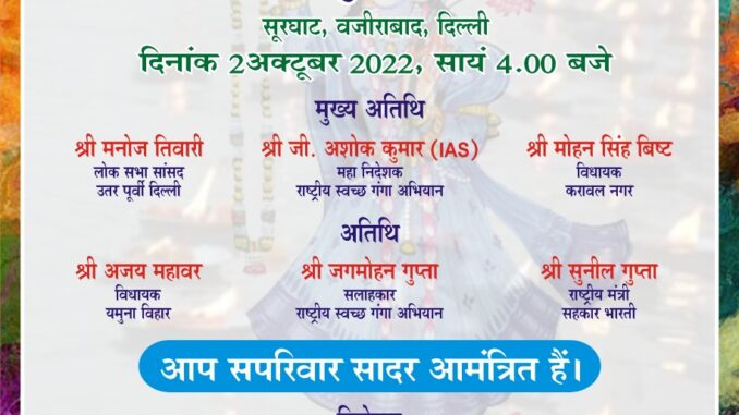 इसी क्रम में राष्ट्रीय स्वच्छ गंगा मिशन और सहकार भारती द्वारा संयुक्त रुप से 2 अक्टूबर 2022 को सूर यमुना घाट वजीराबाद, दिल्ली में यमुना महाआरती और 4 अक्टूबर 2022 को बय्यौवार गाँव, सोनीपत, हरियाणा में 200 किसानों के लिए प्राकृतिक खेती एवं स्वयं सहायता समूह के विषय पर किसान की कार्यशाला का आयोजन कर रहे हैं।