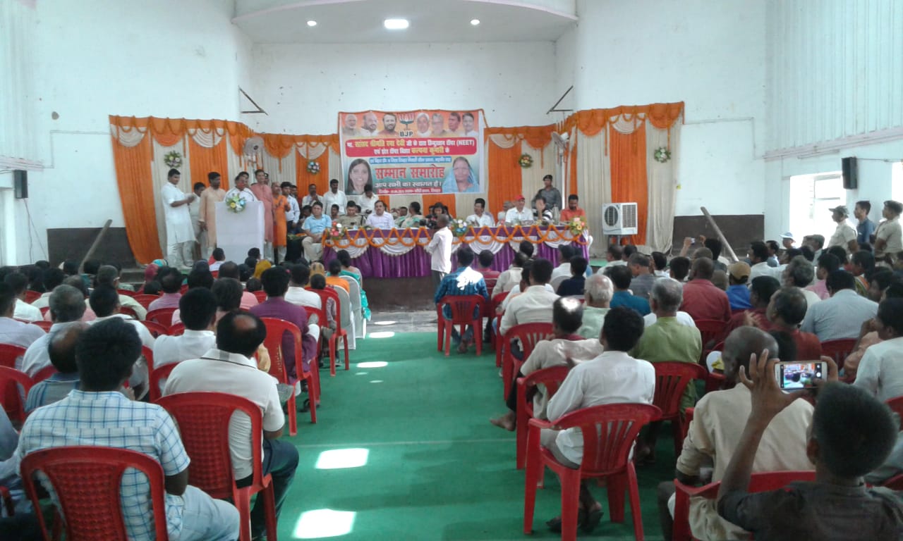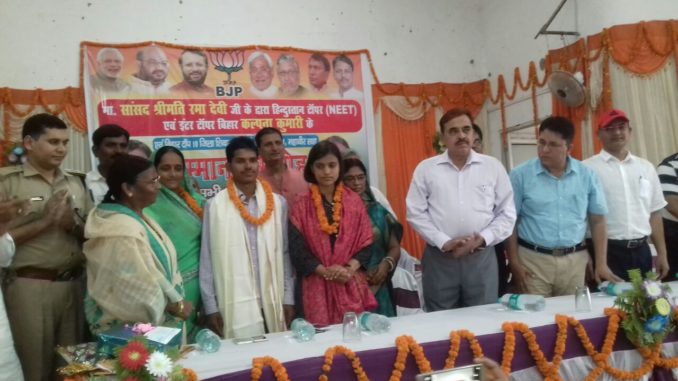 शिवहर जिले की बेटी कल्पना ने पूरे देश नीट में टाॅपर बन कर जिला और राज्य का नाम रौशन किया है। मंगलवार को भाजपा के द्वारा गांधी भवन में कल्पना के लिए एक सम्मान समारोह आयोजित किया गया। समारोह में सांसद रमा देवी, डीएम मो अरशद अजीज, एसपी संतोष कुमार और विधायक मो शरफूदीन ने संयुक्त रूप से कल्पना को गुलदस्ता और मेडल देकर सम्मानित किया। इस अवसर एसडीओ मो आफाक अहमद ने कल्पना की खूब तारीफ की , कहा कल्पना शिवहर जिला की शान है। उन्होंने छात्र और छात्राओं को कल्पना से प्रेरणा लेने को कहा ।