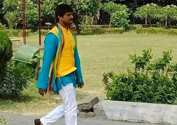 खेसारी लाल ने अपनी आने वाली फिल्म में एक देसी अवतार ले रखा है जिसमे उन्होंने एक नीले रंग का कुरता और सफ़ेद रंग का पैजामा एक पीले रंग की जैकेट के साथ पहन रखा है और इन कपड़ों की शोभा बढ़ाते दीख रहा है उनका ये रंग बिरंगा गमछा और इनके बालों के बारे में तो क्या कहना एकदम कमाल लग रहे है ।