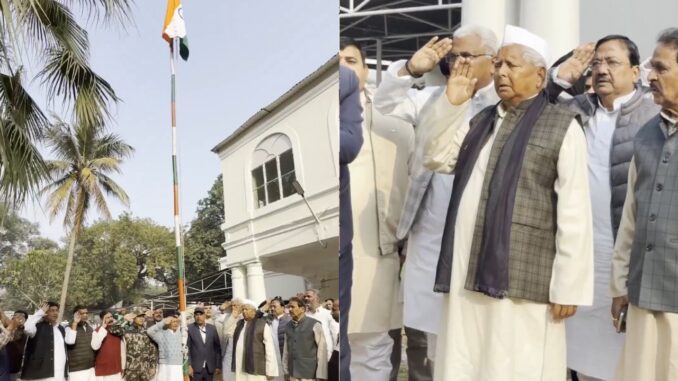 पटना का 10 सर्कुलर रोड, जो सालों से बिहार की सत्ता और सियासत का केंद्र रहा है, वहां आज सुबह से ही हलचल तेज थी। राजद सुप्रीमो लालू प्रसाद यादव ने अपनी पत्नी और पूर्व मुख्यमंत्री राबड़ी देवी की मौजूदगी में तिरंगा फहराया। इस मौके पर राजद के तमाम बड़े नेता और कार्यकर्ता मौजूद रहे। राष्ट्रगान की धुन और ‘जय हिंद’ के नारों के साथ पूरा परिसर देशभक्ति के रंग में डूबा नजर आया।