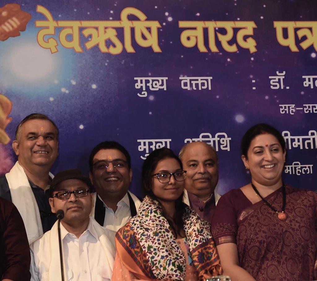 श्रीमती स्मृति ईरानी ने वर्ष 2018 में दंतेवाड़ा में चुनाव की कवरेज के दौरान नक्सली हमले में शहीद हुए दूरदर्शन के छायाचित्रकार अच्युतानंद साहू को मरणोपरांत नारद सम्मान देने के लिए इन्द्रप्रस्थ विश्व संवाद केन्द्र की ज्यूरी की प्रशंसा करते हुए कहा कि आज के टीवी पत्रकारिता के युग में तकनीकी दृष्टि से जो लोग कार्य करते हैं उनके साथ हुई घटना पर किसी का ध्यान नहीं जाता। कैमरामैन, फोटोग्राफर भी पत्रकारिता के इस बदलते युग का अभिन्न अंग हैं। वैज्ञानिक और सांस्कृतिक पत्रकारिता आज लुप्त सी हो गई है जिसे सामने लाने की आवश्यकता है।