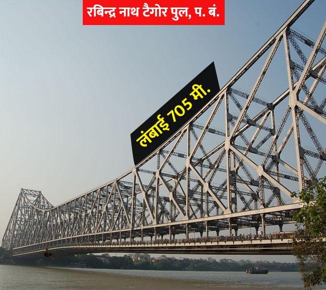 कोलकाता में हुगली नदी पर बने रविंंद्रनाथ टैगोर पुल को हावड़ा ब्रिज के नाम से भी जाना जाता है। हावड़ा ब्रिज के नाम से ये पुल दुनिया भर में मशहूर है। ये हावड़ा और कलकत्ता शहर को आपस में जोड़ता है। समुद्री जहाजों के आने पर ये पुल खुल भी सकता है।