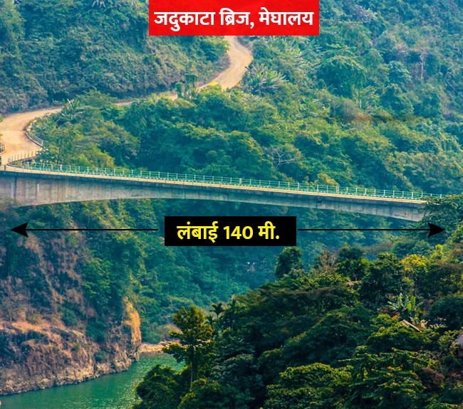 जदुकाटा ब्रिज में भारत में बने सभी पुलों में से सबसे लंबे स्पैम का प्रयोग किया गया है। मेघालय में बना जदुकाटा ब्रिज दुनिया के सबसे खूबसूरत पुलों की सूची में शामिल है।