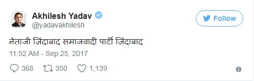 वैसे खबरें थीं कि मुलायम सिंह यादव नई पार्टी का ऐलान करेंगे, लेकिन बाप का दिल बेटे के लिए नहीं माना और वह नए दल की घोषणा नहीं कर पाए. वहीं इस प्रेस कॉन्फ्रेंस को देख रहे अखिलेश यादव ने ट्वीट किया- नेताजी जिंदाबाद, समाजवादी पार्टी जिंदा बाद.
