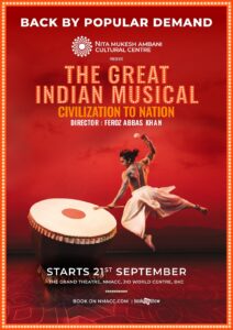 भारतीय कथानक से प्रेरित, स्वदेशी उत्कृष्ट कलाकारों और भव्य सेटों से सजा ‘द ग्रेट इंडियन म्यूज़िकल: सिविलाइज़ेशन टू नेशन’ फ़िरोज़ अब्बास ख़ान द्वारा निर्देशित है। ख़ान दर्शकों को भारत के इतिहास और संस्कृति की एक कलात्मक और यादगार यात्रा पर ले जाते हैं जो सभी के दिल पर एक गहरी छाप छोड़ जाती है।