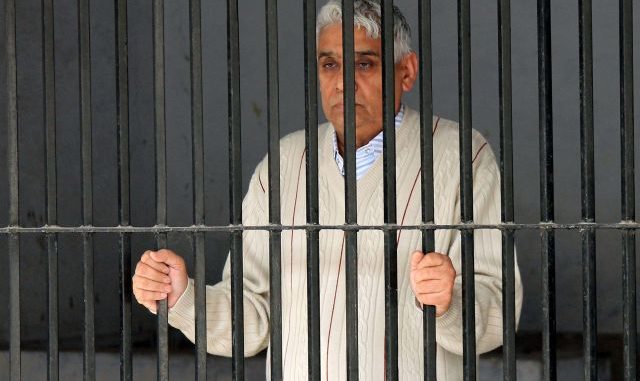CHANDIGARH 20/11/2014 Self styled godman Sant Rampal standing in prisoner's cell at Sector 5 police station before he was taken by police to produce before Punjab & Haryana High Court in Chandigarh on Thursday, November 20 2014. Photo: Akhilesh Kumar