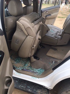 प्राप्त जानकारी के अनुसार पथराव में राहुल की कार का शीशा चकनाचूर हो गया। हमले के बाद राहुल ने कहा कि मैं काले झंडों से नहीं डरता। उन्होंने कहा कि भाजपा के गुंडो ने मेरी कार पर हमला किया है।