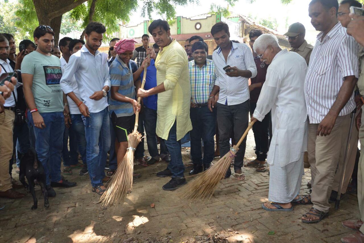 प्रधानमंत्री नरेंद्र मोदी के स्वच्छता अभियान ‘ स्वच्छ्ता ही सेवा ‘ संकल्प पर चलते हुए भोजपुरी फिल्मो के मेगा स्टार रवि किशन ने अपने गृह प्रदेश उत्तर प्रदेश के जौनपुर जिले के केराकत तहसील के विसुई बराई गांव की सफाई के लिए खुद झाड़ू उठाया ।