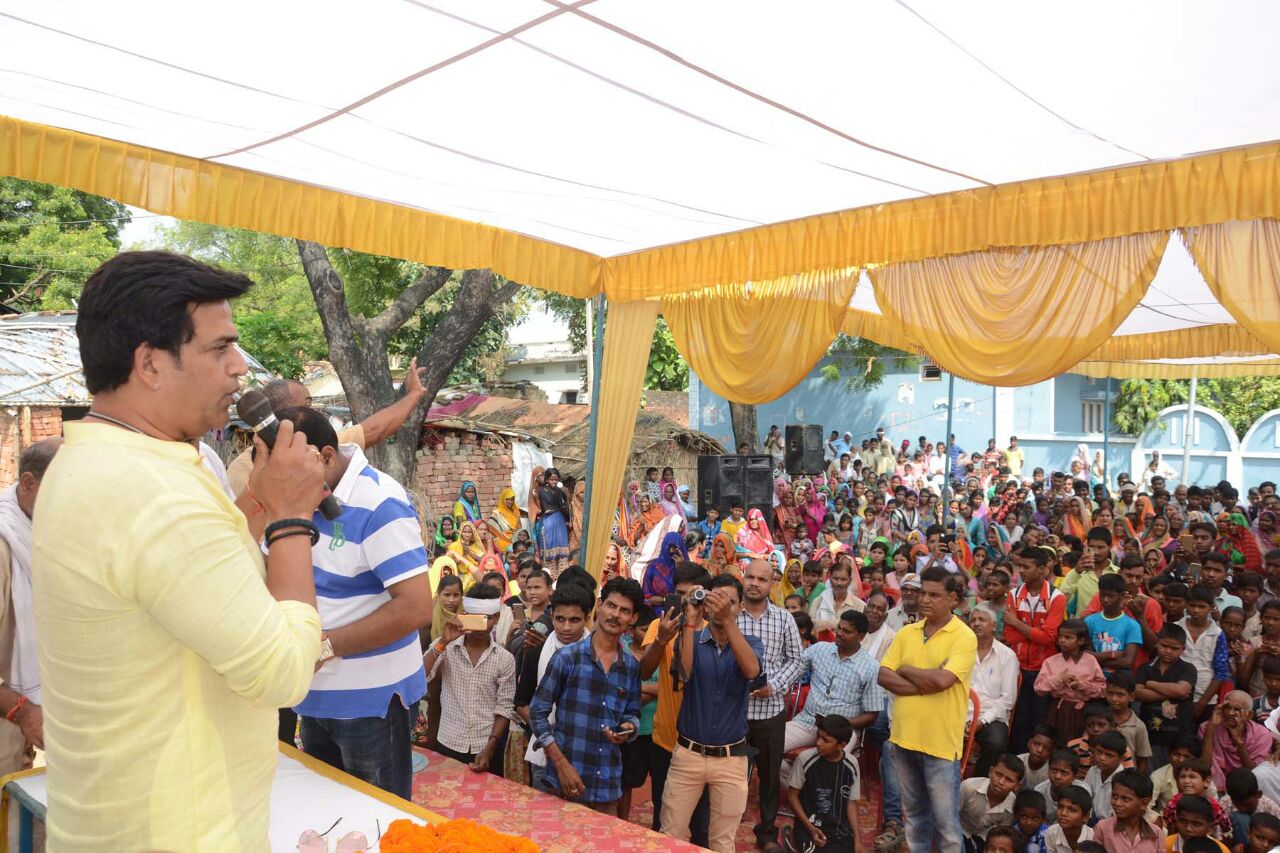 रवि किशन ने कहा कि मै इसी गांव की माटी में पला बढ़ा हूँ रंगमंच पे तरह तरह के अभिनय करते हुए आज इस मुकाम तक पहुंचा हूँ क्योंकि मैंने मेहनत की इस लिए एक संदेश देता हूँ की आप अपने बच्चो को पढ़ाए लिखाएं और और उनमें एक नई ऊर्जा का संचार करें जिससे हर घर में रवि किशन पैदा हो और उनको उनके भारत के माननीय प्रधानमंत्री श्री नरेंद्र मोदी जी का संदेश स्वच्छ भारत सुन्दर भारत के अंतर्गत गांव के हर घर में शौचालय की व्यवस्था करने लिए गांव के प्रधान को आदेश दिया उन्होंने अपने संबोधन में कहा की आज देश के विकास के लिए शिक्षा सबसे जरुरी कड़ी है अगर इस गांव का भविष्य सुधारना है तो सबसे पहले बच्चो में शिक्षा का उदय करना होगा। रवि किशन ने गांव में झाड़ू लगा कर स्वच्छ्ता अभियान की शुरुवात भी किया और लोगों शपथ दिलाया कि वो गांव को स्वच्छ और सुन्दर बनाने में अपना सहयोग करें जिससे इस गांव को एक नई उचाई प्रदान की जा सके ।