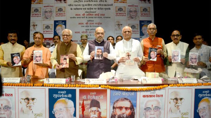10 अक्टूबर , लखनऊ। राष्ट्रीय स्वयंसेवक संघ के पाँच परम पूजनीय सरसंघचालकों के व्यक्तित्व एवं कर्तृत्व पर केंद्रित पुस्तकों ‘ हमारे डॉ. हेडगेवार जी ’, ‘ हमारे श्रीगुरुजी ’, ‘ हमारे बालासाहेब देवरस ’, ‘ हमारे रज्जू भय्या ’ तथा हमारे सुदर्शनजी का लोकापर्ण भारतीय जनता पार्टी के अध्यक्ष एवं राज्यसभा सांसद मान. श्री अमित भाई शाह के करकमलों से संपन्न हुआ। 10 अक्टूबर को सांइटिफिक कन्वेंशन सेंटर , किंग जार्ज मेडिकल यूनिवर्सिटी , लखनऊ में प्रभात प्रकाशन द्वारा प्रकाशित इन पुस्तकों के लोकार्पण के अवसर पर मुख्य अतिथि थे उत्तर प्रदेश के मुख्यमंत्री मान. योगी आदित्यनाथ एवं राज्यपाल मान. श्री रामनाइक। मुख्य वक्ता थे राष्ट्रीय स्वयंसेवक संघ उत्तर-पश्चिम क्षेत्र के संघचालक मान. प्रो. भगवती प्रसाद शर्मा। लोकापर्ण के बाद मान. राज्यपाल ने अपने उदबोधन में कहा कि पाँचों सरसंघचालकों से नजदीक का संबंध रहा है और उनके दिये संस्कारों से जीवन में बहुत कुछ सीखने को मिला है। डॉ. हेडगेवार से 6 वर्ष की उम्र में संपर्क में आया तथा छोटी उम्र में भी बहुत कुछ सीखने का अवसर मिला। गुरु गोलवलकर जी का सान्निध्य प्राप्त हुआ। प्रचारक बनना चाहता था , पर पिता के असामयिक निधन से घर की जिम्मेदारी के कारण गोलवलकर गुरुजी की सलाह पर सरकारी सेवा आरंभ की। मुख्यमंत्री योगी आदित्यनाथ ने कहा कि किताबों के प्रकाशन से समाज को अतीत से जोड़ने का प्रयास किया गया है। प्रभात प्रकाशन द्वारा प्रकाशित पाँच किताबों का संग्रह समाज को एक दृष्टि के साथ-साथ व्यक्तिवादी , जातिवादी सोच से अलग हटकर राष्ट्रधर्म की रक्षा करने का संदेश भी देता है। पुस्तकों के माध्यम से ऐसे महान व्यक्तियों के जीवन के बारे में , जो समाज के लिए समर्पित थे , को जानने और पहचानने का मौका मिलेगा। भारतीय जनता पार्टी के अध्यक्ष एवं राज्यसभा सांसद श्री अमित शाह ने अपने विचार व्यक्त करते हुए कहा कि डॉ. हेडगेवार , गुरु गोलवलकर , बालासाहेब देवरस , रज्जू भैया , सुदर्शन जी ने अपने जीवन में अपने जीवन में अनेक उतार चढ़ाव देखे हैं। ये लोग स्व के लिए न जीकर संस्था के लिए जिए। स्वयं को पिघलाकर देश के लिए काम किया। ऐसे लोगों ने समाज के लिए जीना अपना धर्म माना तथा उज्जवल परंपरा की स्थापना की। पाँचों सरसंघचालक ऐसे विद्वान थे कि कई संत भी स्वयं को उनके सामने बौना समझते थे। प्रो. भगवती प्रसाद शर्मा तथा श्री बलदेव शर्मा ने भी अपने विचार रखे। इस भव्य समारोह में बड़ी संख्या में बुद्धिजीवी , चिंतक , विचारक , साहित्यकार एवं पत्रकारों ने भाग लिया। डॉ. श्याम बहादुर शर्मा ने ‘ हमारे डॉ. हेडगेवार जी ’, श्री संदीप देव ने ‘ हमारे गुरुजी ’, श्री रामबहादुर राय एवं श्री राजीव गुप्ता ने ‘ हमारे बालासाहेब दे