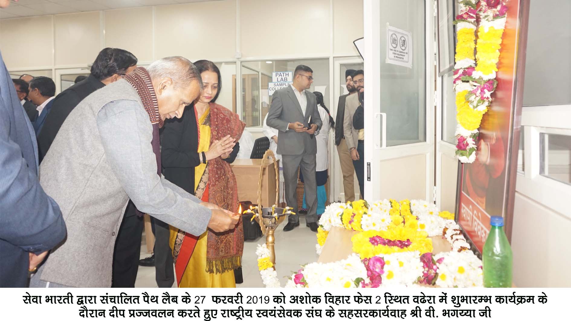 सेवा भारती के वढेरा भवन केन्द्र में वंचित वर्गों के लिए पैथ लैब का उदघाटन आज राष्ट्रीय स्वयंसेवक संघ के सहसरकार्यवाह श्री वी.भगैय्या जी द्वारा किया गया। अशोक विहार फेज-2 में इस लैब का शुभारम्भ करते हुए श्री भगैय्या जी ने कहा कि सेवा कार्यों में समपर्ण के कारण ही यह देश अब तक जीवित है। जितने भी लोग सेवा भारती केन्द्रों में काम करते हैं सभी प्रेम और सम्मान का व्यवहार करते हैं जिससे लोगों का आधा रोग दूर हो जाता है।