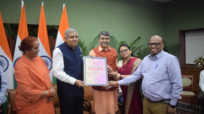 महामहिम उपराष्ट्रपति धनखड़ जी ने “रॉकेट वूमेन ऑफ इंडिया’ ऋतु करिधाल व वैज्ञानिक एम. श्रीकांत जी की खुले मन से प्रशंसा की तथा 95 वर्षीय एथलीट व 95 पदक जीतने वाली दादी भगवानी देवी डागर को युवाओं का प्रेरणा स्रोत बताया। उन्होंने सभी विजेताओं को प्रतीक चिन्ह देकर सम्मानित किया ।
