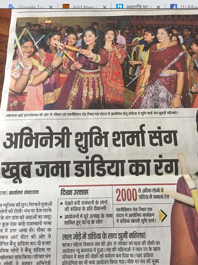 बिहार अपडेट: भोजपुरी फ़िल्म जगत की ड्रीम गर्ल शुभी शर्मा नवरात्र में बिहार के विभिन्न शहरों में अपना जलवा बिखेर रही है । विभिन्न शहरों में आयोजित डांडिया नाइट में युवाओं की भारी भीड़ उमड़ रही है और शुभी शर्मा अपनी अदा से उन्मे जोश का संचार कर रही है । तेज़ म्यूज़िक पर शुभी के अन्दाज़ से हज़ारों युवक युवती झूमने पर मजबूर हो जा रहें हैं ।