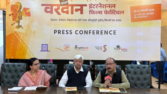 नई दिल्ली: राजधानी दिल्ली एक ऐसे ऐतिहासिक क्षण की गवाह बनने जा रही है, जो विश्व में पहली बार हो रहा है। 26 और 27 फरवरी 2026 को गुरु गोबिंद सिंह इंद्रप्रस्थ यूनिवर्सिटी में आयोजित होने जा रहा है— ‘वरदान इंटरनेश्नल फिल्म फेस्टिवल’। यह कोई साधारण फिल्म फेस्टिवल नहीं है, बल्कि यह सिनेमा के माध्यम से मानवता की उस सेवा को नमन है जिसे हम ‘अंगदान’ और ‘देहदान’ कहते हैं। दधीचि देहदान समिति और संप्रेषण मल्टीमीडिया के इस साझा प्रयास ने आज पूरी दुनिया का ध्यान अपनी ओर खींचा है।